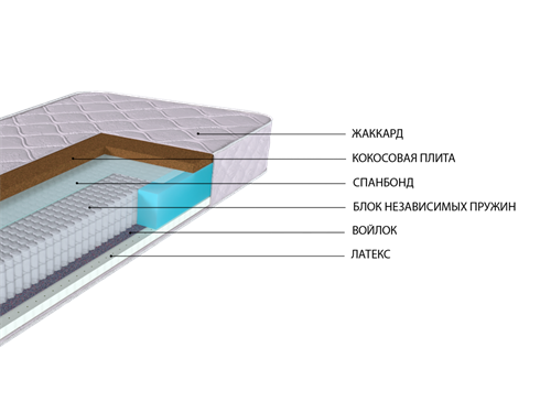 Ассиметричный матрас с разной жесткостью сторон. Универсальная модель – два матраса в одном. Одна сторона (с высокой кокосовой плитой) - жесткая, другая - упруго-мягкая, повышенного комфорта. Идеально подходит тем, кто еще не определился в своих предпочтениях по жесткости-мягкости.
